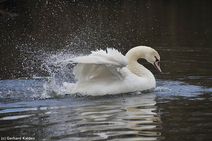Höckerschwan badet, Aueteich Frankenberg