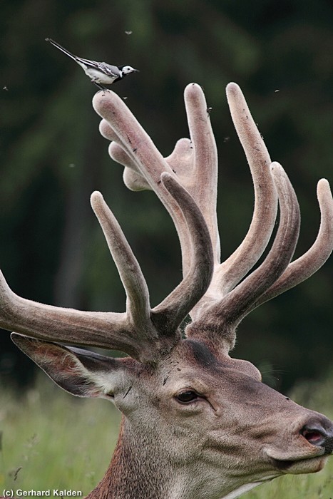 Rothirsch mit Bachstelze, Ederkopf