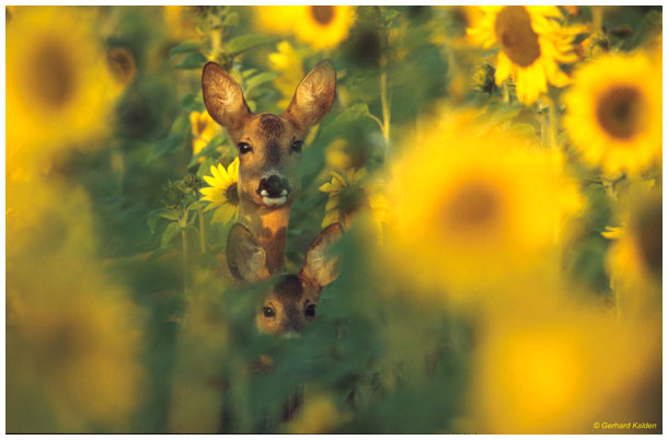 "Rehe in Sonnenblumenfeld"